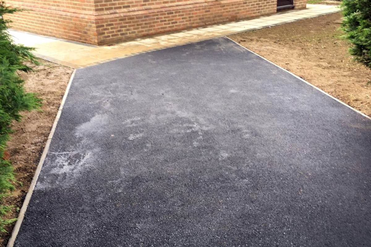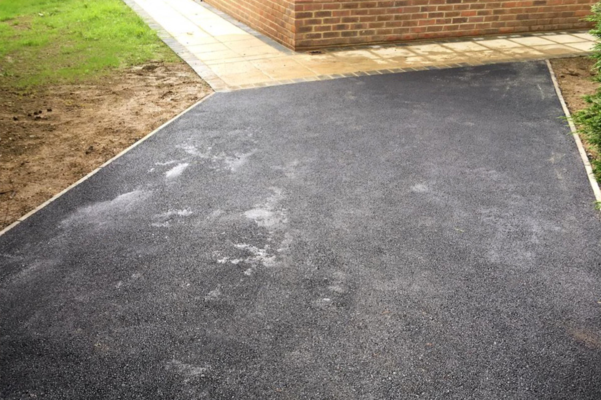 We created a new driveway and pathway for a new build in Paddock Wood Kent. The overall look was smart and it will look even better when the grass has grown up to the granite sett and Tegula charcoal edging.